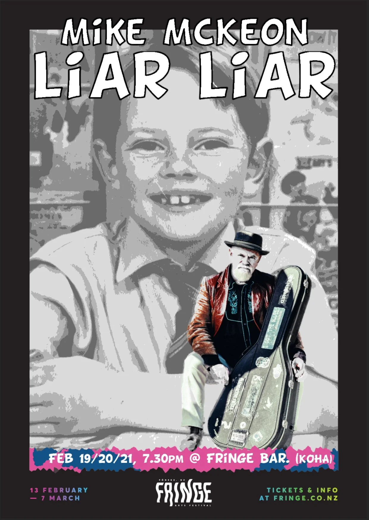 "Liar , Liar pants on fire" is what my 5 year old self used to shout at others , who I thought, were being boastful or making shit up! - It is one of many memories that form the basis, and the focus of this show. I came to realise that a lot of my writing is inspired by memory. The trouble is my memories are not linear or logical , more a random collection of pictures, smells and sounds. Many of mine are distorted by time or even false! So which ones are true? Liar Liar Pants on Fire is 50 minutes of spoken word, story telling and song, based on my own writing/collaborations. All written over the last 50 years spent performing across the globe. You will get to decide which ones are a fiction! This new solo show will debut at The New Zealand Fringe Festival in February 2026.